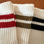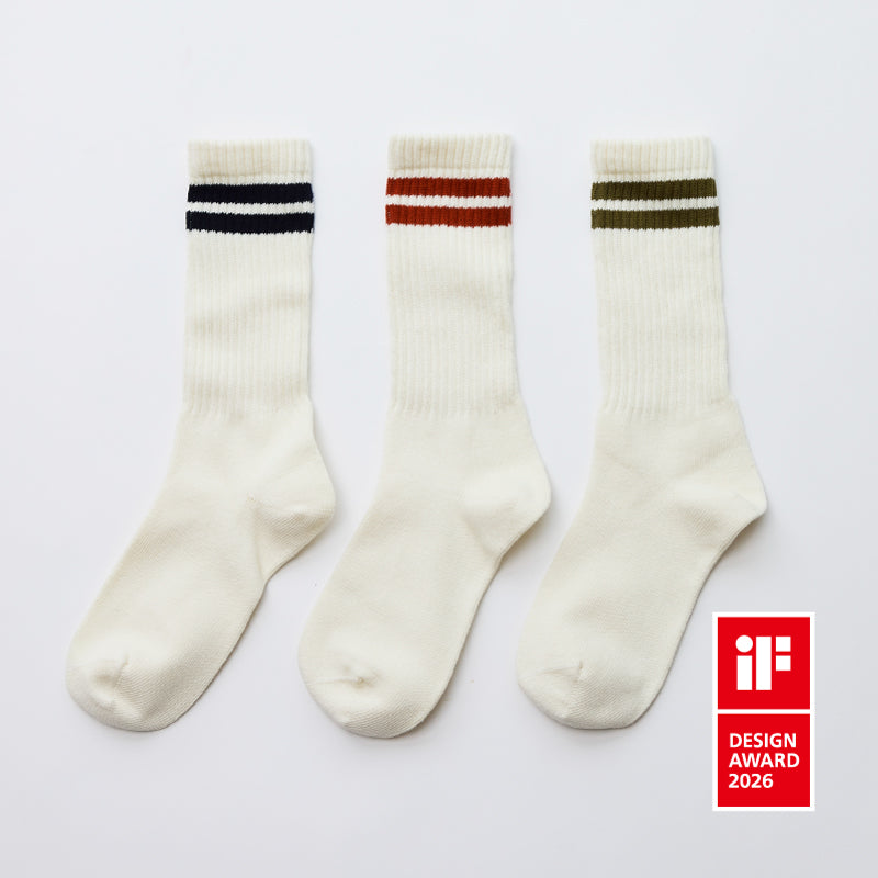 次世代合成繊維PlaX™を使用した日常使いしやすい2本ラインの定番ソックス。